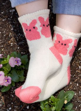 Hippety Hoppety, Easter's on its way! Time to get busy and whip out a pair of Marshmallow Bunnies Socks. I'm going to get some yellow and make a pair of Marshmallow Peeps Socks© too!